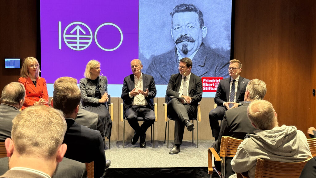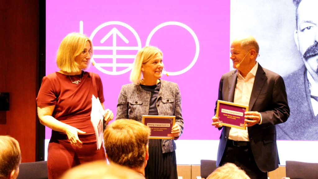 Med på firandet fanns också S-gruppledarna i Finlands respektive Islands parlament, Tytti Tuppurainen och Guðmundur Ari Siurjónsson, som tillsammans med Magdalena Andersson och Olaf Scholz deltog i ett panelsamtal.